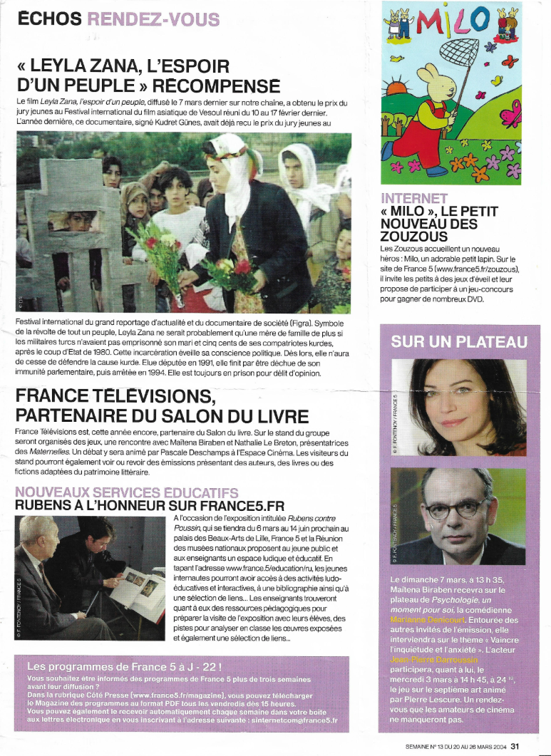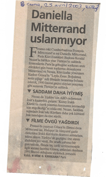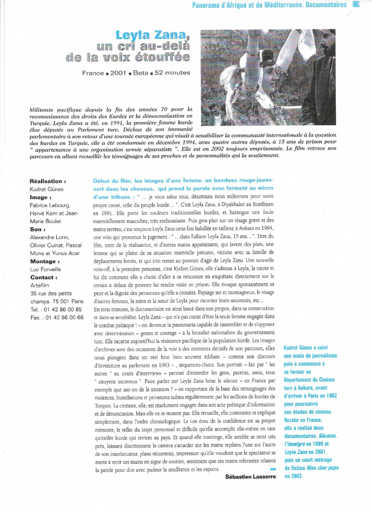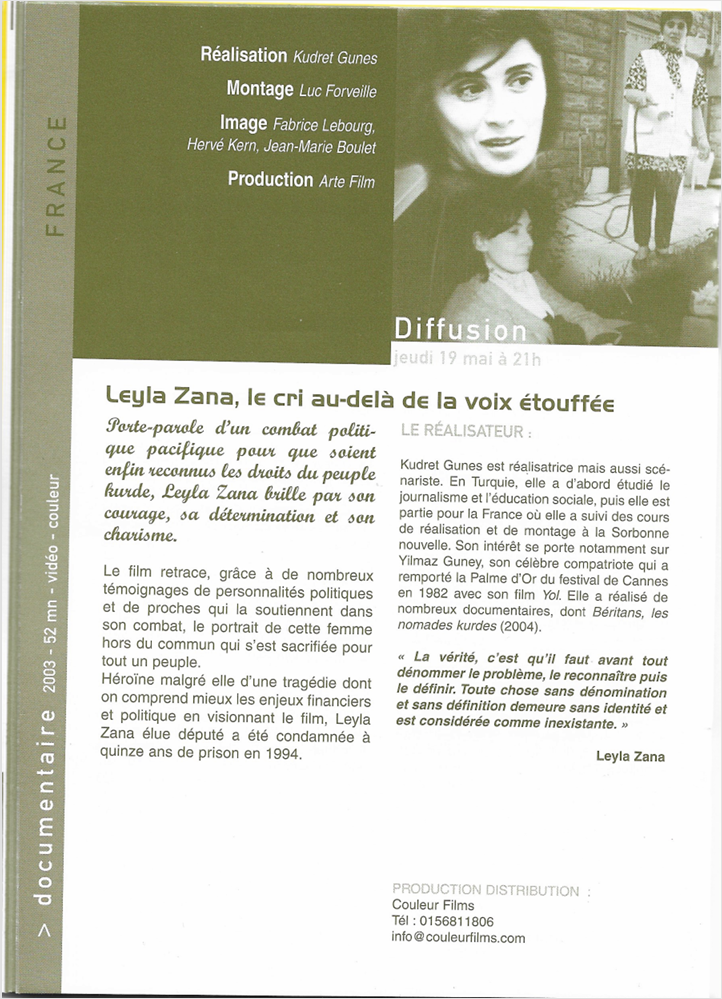 Leyla Zana, le cri au-delà de la voix étouffée – 2002, Documentaire 53.
